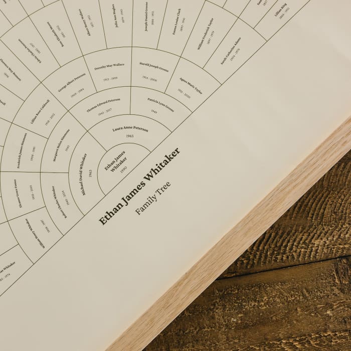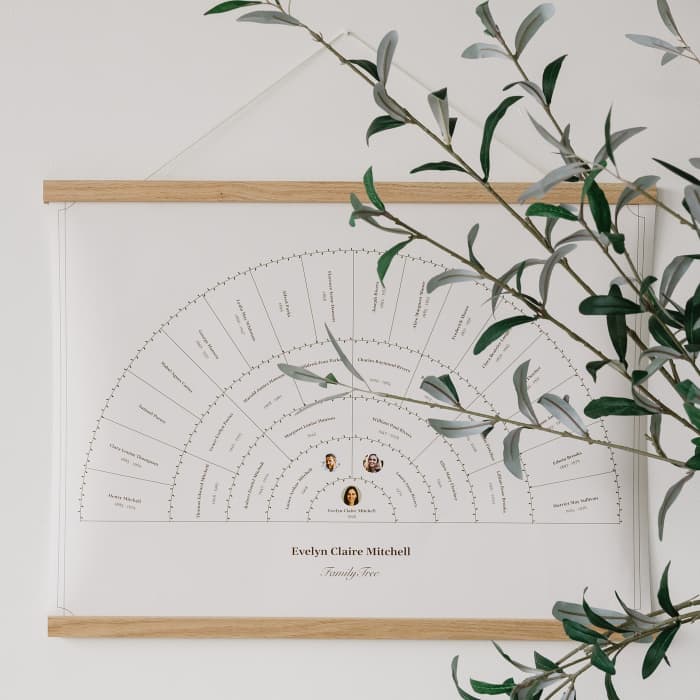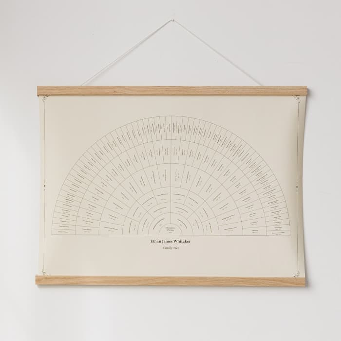 Preserve and share your family tree with a custom Family Tree Poster. Just connect your Ancestry account and choose from three beautiful designs. Your custom poster will be printed on archival-quality photo paper and pairs perfectly with a standard size frame or with a set of our Wood Poster Rails. Display your family's story in your home and enjoy for years to come.